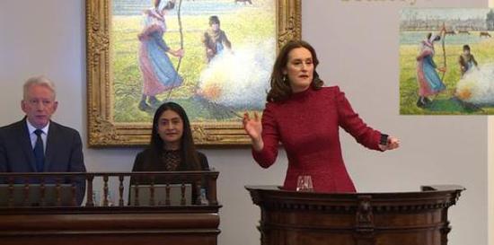 2020年2月4日晚,伦敦苏富比拍卖毕沙罗《霜降,农家少女在生火》现场