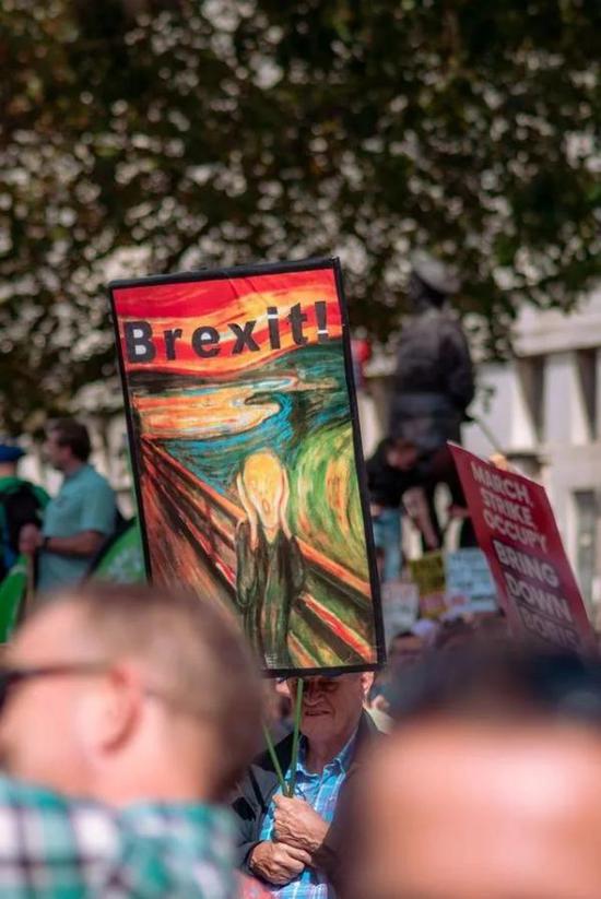 英国群众进行支持英国脱欧游行,图片来源:Fred Moon,《艺术新闻》