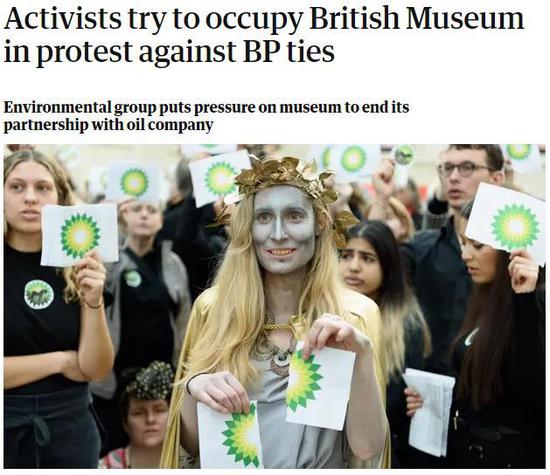 据香港《文汇报》报道,英国文化机构近年接受化石燃料公司赞助,引发愈来愈大的反对声浪,伦敦大英博物馆举办的 “特洛伊:神话与真实”展览,被传是由英国石油公司(BP)赞助,引起多个环保组织反对,数百人一度闯入博物馆占据部分展厅,要求馆方停止和BP合作。