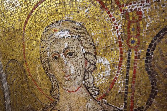 圣马可大教堂内被洪水中的矿物质盐破坏的天使加百列马赛克 photo: Procuratoria di San Marco