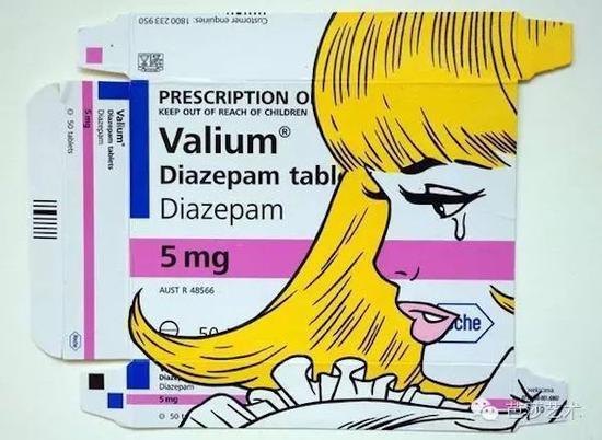 澳大利亚插画设计师本·弗罗斯特(Ben Frost)习惯于在各种日常包装上进行创作,他也没有放过药盒。在弗罗斯特笔下,药品包装完全改头换面,他最常在安定药的盒子上作画,有可能也是因为这是他生活中的常备药。