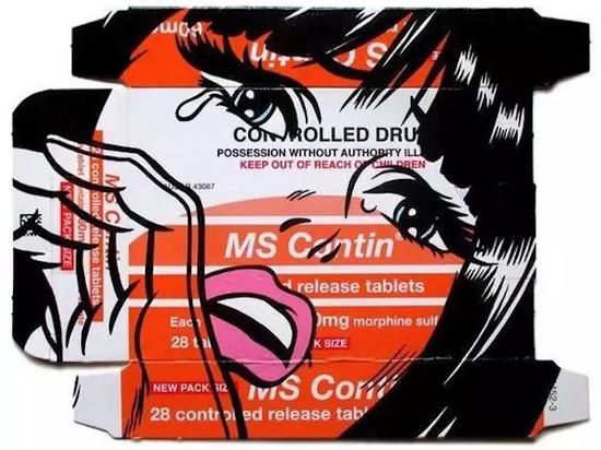本·弗罗斯特药盒上哭泣的美人与药盒上原有的药品信息结合在一起,并不冲突。这样的美国漫画风格本身在波普艺术中时常出现,让人联想到美国艺术家利希滕斯坦的作品。艺术家后来创作的画面与这些药盒上原有的信息叠加之后,使观者产生许多故事性的联想。