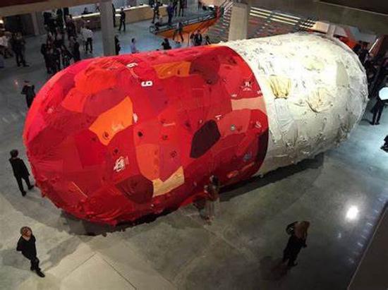 近些年,中国的当代艺术家也将医药融入艺术实践。尹秀珍曾在莫斯科车库当代艺术博物馆展出《缓释》她在莫斯科当地收集了总面积超过200平米的二手衣物,并手工缝制成一颗直径4.5米、长度12米的巨型胶囊药丸。