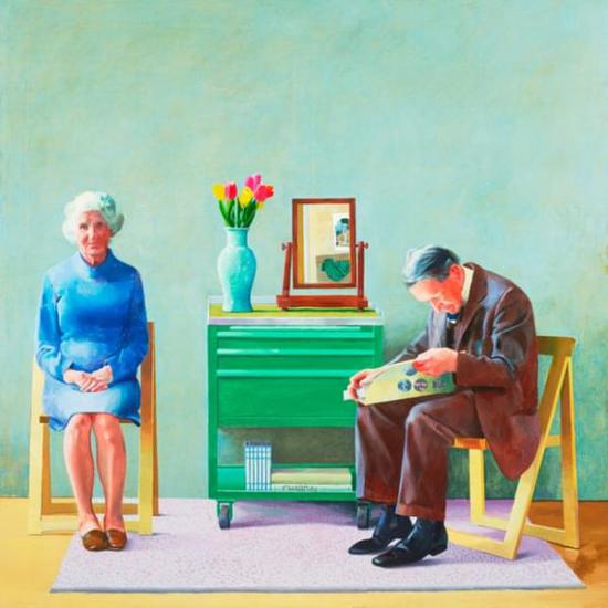 离开巴黎后,霍克尼回到他在伦敦诺丁山租的公寓。“我在那里得到了和平和宁静,最终在1977年完成了另一个版本的创作。”这就是著名的《我的父母》,这件现藏于英国泰特不列颠美术馆的作品忽略了艺术家的镜像,2017年在泰特不列颠举行的“大卫·霍克尼回顾展”也成为迄今为止英国参观人数最多的收费展。