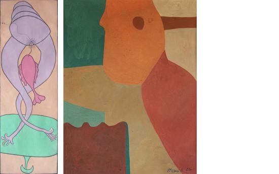 左:I Gusti Ayu Kadek Murniasih《Tali KBku di Caplok Ikan Dalam Mimpi》(1999),图片由艺术家和Gajah艺廊提供;右:Mohamed Hamidi《Composition 1964》(1964),Mohamed Hamidi,图片由艺术家和Selma Feriani艺廊提供