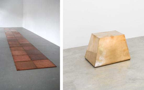 左:卡尔?安德列《Cyprigene Sum》(1994),图片由艺术家和Alfonso Artiaco艺廊提供;右:竹冈雄二《Golden Base》(1987),图片由艺术家和Konrad Fischer艺廊提供