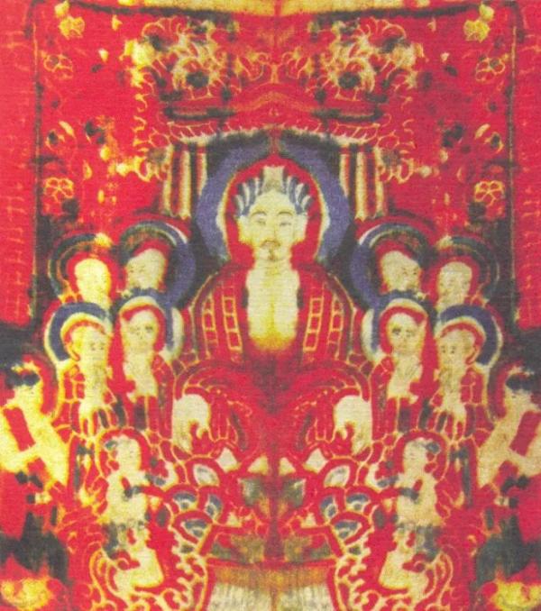 《洛阳伽蓝记》载宋云、惠生使西域时见当地“悬彩幡盖,亦有万计,魏国之幡过半矣。”这类绣有佛像的幢幡,在当时就称为“绣像”:“每讲会法聚,辄罗列尊像,布置幢幡”,也就是说,它是僧人进行讲经说法时悬挂的,通常由施主供养。