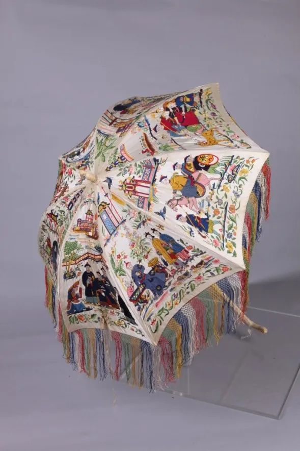 白缎地彩绣人物伞,清,中国丝绸博物馆