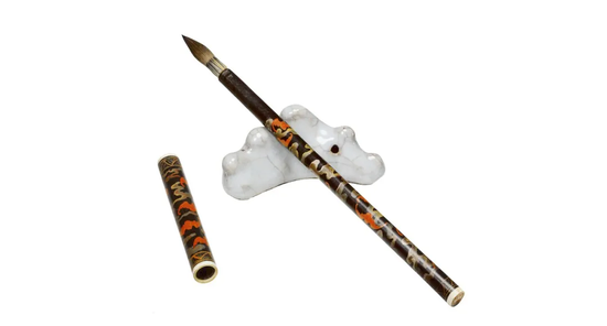 拟人拟物得名。历代文人对毛笔的喜爱,往往令它们被赋予拟人的色彩,甚至有时候还有了官位,如“毛生”“毛文锋”“藏锋都尉”“亳州刺史”。韩愈的《毛颖传》有“毛颖”“中书君”“管城子”之称,《文房四谱》有“管城侯”“毛元锐”之谓。“尖头奴”则是文人取其形似之谓。这一称谓出自《魏书》,原指北魏的名臣古弼。毛笔使用时间久容易脱毛,因此也有人戏称为“秃友”或“退锋郎”。文房四宝是文人书房案头摆设的基本用品,而笔的吸墨性和对墨的调和使用又尤能体现毛笔的特点和品质,故唐代书法家薛稷被戏称为“墨曹都统”“黑水君王”。此外,皇帝作为封建社会的顶层,天子用笔自然要有别于他人,因此需要特别定制,在笔的命名上自然也与众不同。如乾隆皇帝的御用“天子万年”笔。