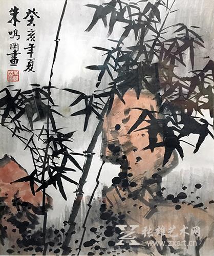 朱鸣冈《竹石图》89×64cm 7.5平尺 框 1983年作