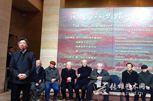张雄艺术网讯 (文/王三秀)2015年11月21日上午,《闽南红•洪瑞生油画展》在中国美术馆正式开幕,展览由吴作人国际美术基金会、福建省文化厅、福建省美术家协会、厦门大学艺术学院主办,展览展出油画家洪瑞生70余幅油画作品。中央美术学院院长范迪安、著名油画家侯一民、中国油画学会主席詹建俊、厦门大学艺术学院院长苏力、当代著名画家洪瑞生等领导嘉宾出席了开幕式。