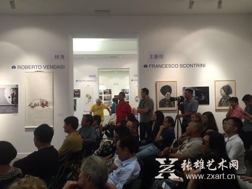 开幕式上,拉斯佩齐亚市市长Massimo Federici先生、市文化厅厅长Luca Basile先生和厦门美协主席王新伦教授先后发表了讲话。他们均表示期待通过本次交流展促进两地艺术家更多的往来,相互学习借鉴,也为两市各种文化艺术的交流与合作提供宝贵的经验。两地的艺术家互相赠送了礼品。由当地音乐学院副院长帕格尼尼音乐学院副院长,带领着二位中国音乐女留学生演唱了中国歌曲和意大利歌曲。在优美的音律中,艺术交流展隆重开幕。中国美协党组书记秘书长徐里先生的作品作为特邀参加了展览,厦门美协代表团王新伦、林涛、张葆冬丶林泽洪、汤琳南、万吉欣、黄志洋、张及时、涂启先、谢树涛、陈朝宗、陈亚源、廖晓明、黄大刀、何茵、庄红伟、吴汉青、曾楠来自厦门美协的19位艺术家和当地10位艺术家的50余件中国画、油画、水彩画、雕塑、磨漆画和意大利摄影家的艺术作品参展。王新伦、林涛、林泽洪三位艺术家的作品分别被美术馆、市政府和市文化厅等机构收藏。黄大刀先生此次带去了其最新创作《雪域秘境》。