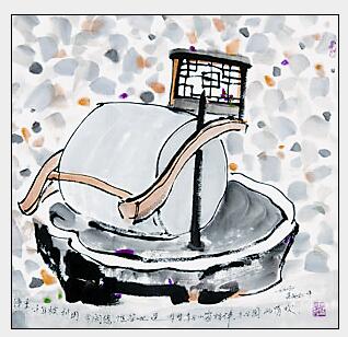 有一种天籁,它早已消失在记忆深处。可是在吴冠中作此幅画时,那天籁之声,韵味悠长,由远及近,它带着故乡曾经的蓝天白云,它带着村庄的荷塘草香,它带着母亲早起出门奔向石磨的脚步声,它带着刚收割下来的小麦磨成的面粉,蒸熟的白馒头的香味,近身入梦,梦里就有了童年时的石磨声声。
