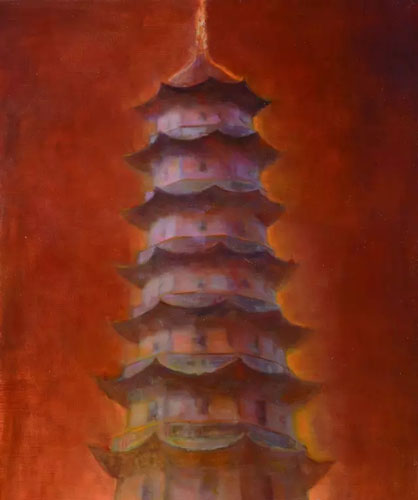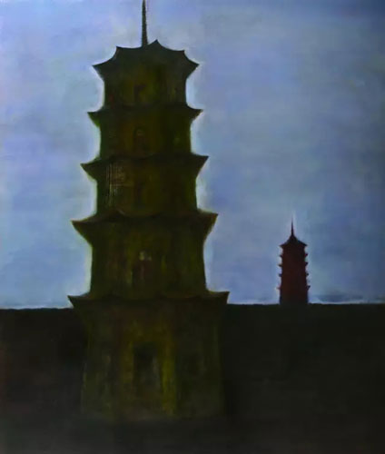 只是在西体中用的大课题里面,冯巍的风景画应该还有更深一层的意义。正如贝歇夫妇跑遍全欧,系统性的拍摄造形极其相似的水塔、冷却塔、熔矿炉、铁架塔等等工业建筑设备时,乃是在当时的地志学运动(New topographic movement)热潮影响之下所从事的一种分类学(typology)研究,目的在于纪录工业环境,并且提出老建筑不断被摧毁之下所引起的社会、文化及美学的问题。而冯巍一再重复的塔、桥、巷、湖,虽在方法上与贝歇夫妇相去甚远,但却同样的迫使观众从不寻常的美学角度去比较和判断这些建筑物。我认为在云淡风轻之中,冯巍表达了他对江南文化、特别是闽台文化遗存的一些社会观点,特别是因为他并不在意精细的描绘所有的客观细节,而是将它们系统化、符号化,甚至抽象化,让无法清楚辨识地点的这些建筑物,成了一个孤独的记号。而这正是我认为他的作品中,最独特而耐人寻味的地方。