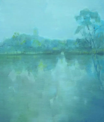 事实上,由于他的风景锁定了某些一再重复的主题,遂因此“观念”了起来。那些《塔系列》、《桥系列》、《湖系列》或《巷系列》,与其说接近莫内(Claude Monet, 1840-1926)的《鲁昂大教堂系列》,或是塞尚(Paul Cézannes, 1839-1906)的《圣维克多山系列》,不如说接近贝歇夫妇(Benhard & Hilla Becher )从1950年代起,以摄影的方式在全欧洲进行的工业考古(industrial archaeology)系列。冯巍的确像莫奈,从到处旅行搜罗美妙的风景,到研究同一景物在不同气候条件下产生的形式变化;但他也像塞尚,对着同一座山,从不同的时间和角度去观察和体悟风景的本质与结构。然而,我认为绘画形式与结构的探索应该不是他唯一的目的,因为他对油画的使用,不似莫奈或塞尚那么浓重的强调绘画的本体。他那些模糊清淡的风景,少了油光;那种灰灰雅雅的颜料层,或薄薄干干、或湿湿凉凉,带着微妙层次的近乎奇异的色感,试图吸引的绝不是人们的目光,而是人们的思想。懂得中国画的人,就能明白他的《安泰河畔》、《远眺十七孔桥》等胜地景色,不论在构图与设色上都带着微妙的东方色彩。无怪乎他曾如此宣称:“中国油画家应对广泛的西方绘画理论参照与批判性把握中,重新解读我国传统绘画”,而这也正是他重画风景的野心。