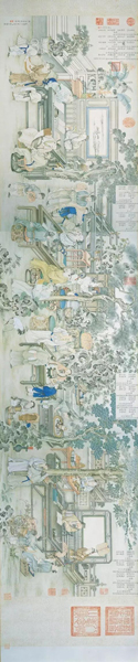 摘要: 姚文瀚此卷绘于乾隆十七年,上有嵇璜楷书“十八学士赞”,与院藏《刘松年唐十八学士图》构图相同,设色明净秀丽,用笔精细挺劲,人物开面略施阴影,具立体感,对各类家具器物的细节描绘考究